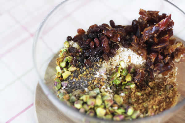 Recently, I have been loving raw, unsalted pistachios and wanted to incorporate them into a recipe which is easy to make, and can be enjoyed for breakfast or as a low sugar snack. Rich in protein and fibre, pistachios and oats combine together perfectly to create a yummy, healthy, energising treat.
