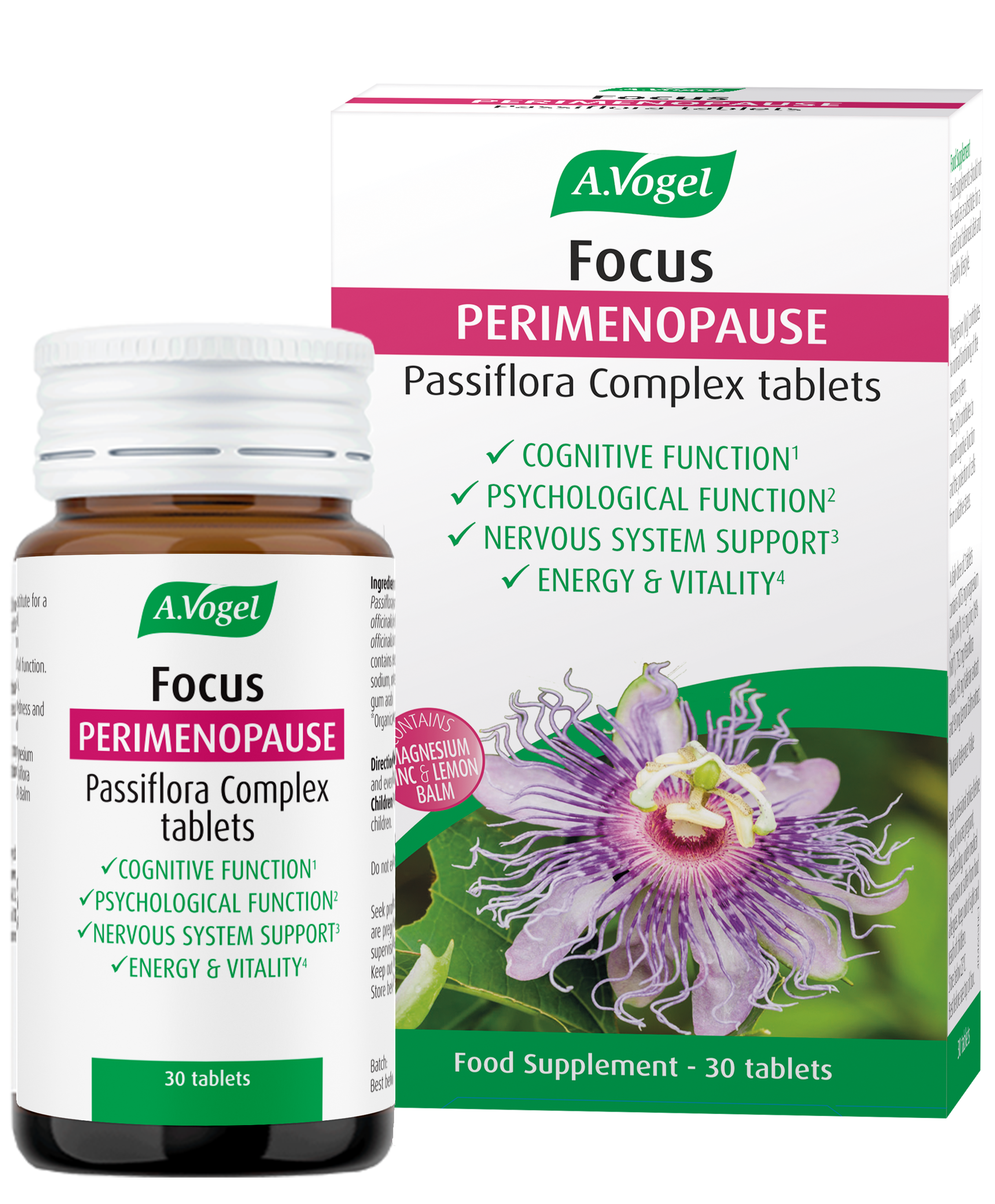 Perimenopause Focus tablets is a food supplement containing Passiflora, Valerian, Magnesium, Zinc & Lemon Balm. Take daily to support focus and help keep a clear mind.